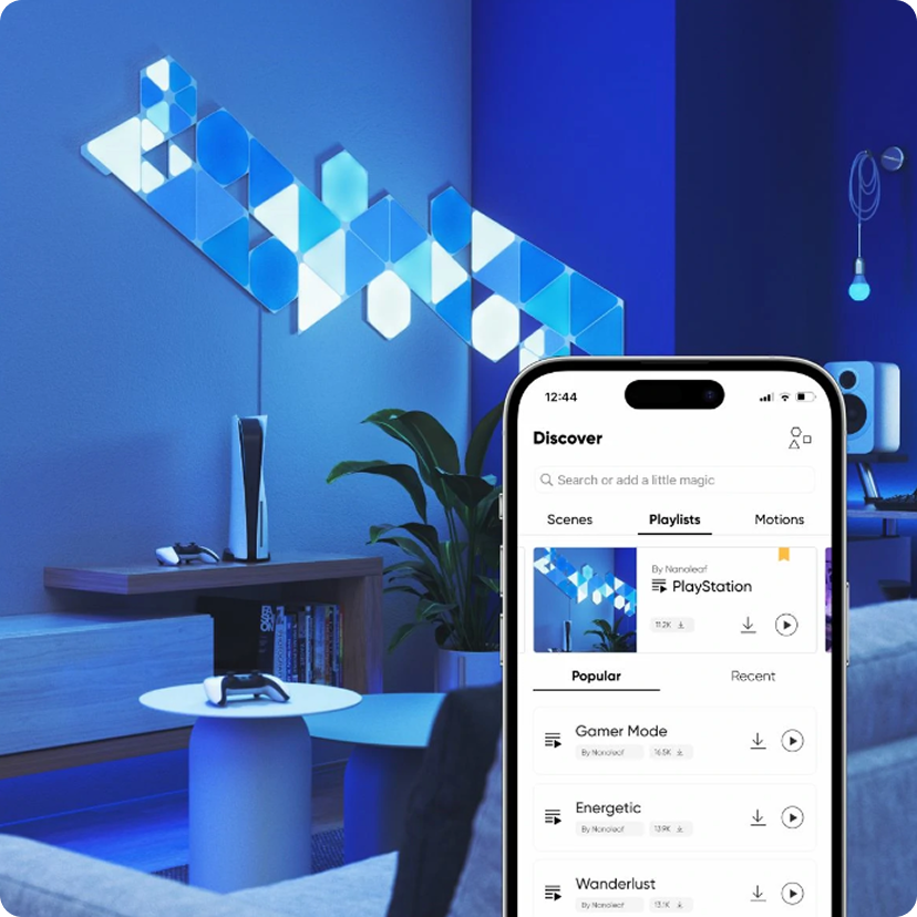 Explore the Nanoleaf community. Download new Scenes and upload your own creations! Check out our playlists that are curated for different moods and activities throughout your day.